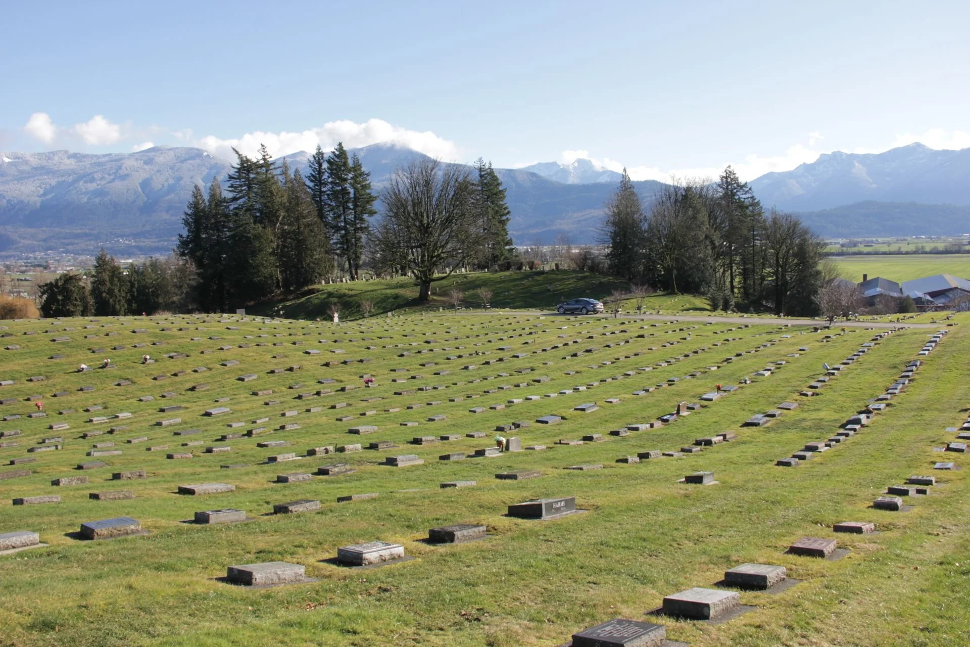 Established in 1873, it is one of the province’s oldest perpetual-care cemeteries, with a long legacy of serving families in the Fraser Valley. Set across approximately 17–20 acres of rolling lawns, gardens, and mature trees, the cemetery offers a peaceful resting place with panoramic views of Mt. Cheam and the surrounding valley.